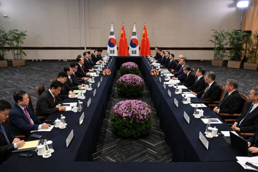 윤 대통령은 이날 페루에서 열린 아시아태평양경제협력체(APEC) 정상회의 참석을 계기로 리마의 한 호텔에서 시 주석과 만나 “글로벌 안보와 경제 질서가 격변하는 가운데 한·중 양국이 여러 도전에 직면해서 긴밀한 소통과 협력을 지속해 나가기를 기대한다”며 이같이 밝혔다. 윤 대통령은 “한반도를 포함한 역내 평화와 번영은 한국과 중국 공동의 이익인 만큼 오늘 회담을 통해 이를 위한 협력 방안에 대해 깊은 논의가 있기를 기대한다”고도 말했다.
