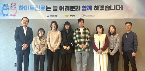 지난 15일 하이트진로 서초동 사옥에서 김인규 하이트진로 대표와 소방공무원 유가족이 참석한 가운데 순직 소방관 노부모를 위한 유가족 생계비, 순직 인정 소송비 등 총 15가구의 소방유가족 지원금을 전달했다.