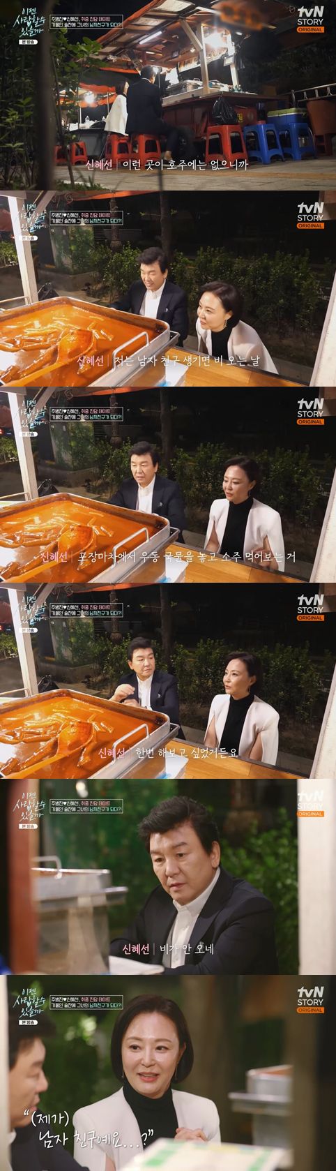 그리고서 주병진은 "얼마 만에 포장마차에 온 건지 모르겠다"라며 감회를 전했고, 이에 신혜선은 "너무 좋지 않냐. 포장마차가 호주에 없어서 너무 좋다. 호주에서 한국 드라마 볼 때 포장마차에서 먹는 장면 보고 그게 너무 부러웠다"라고 말했다.