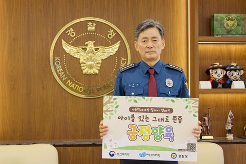 (서울=연합뉴스) 이동환 기자 = 조지호 경찰청장은 19일 긍정양육 문화 확산을 위한 '아동학대 예방 릴레이 캠페인'에 동참했다.