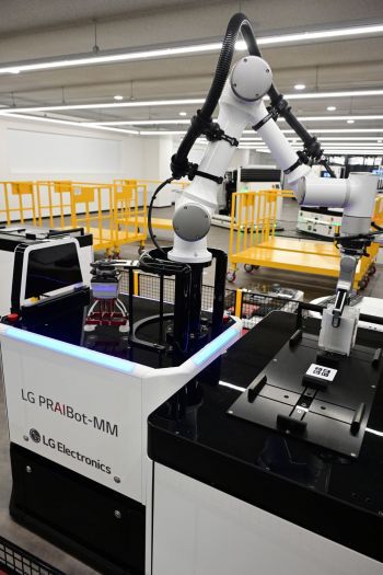 LG전자 이음5G 네트워크로 연결해 작업하는 '자율주행 수직 다관절 로봇'. LG전자는 대한민국전파산업대전에서 이음5G 기술을 처음으로 시연한다. LG전자 제공 |