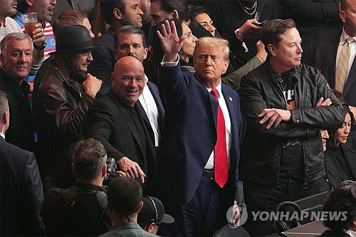 지난 16일 뉴욕의 UFC 경기장을 찾은 도널드 트럼프 미국 대통령 당선인과 일론 머스크 테슬라 최고경영자. (AP=연합뉴스) |
