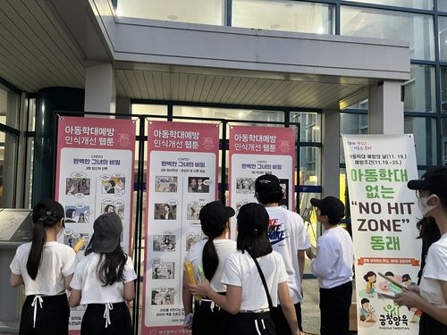 부산 동래구(구청장 장준용)는 지난 15일 동래문화회관 대극장 앞에서 2024년 아동학대 예방의 날(11월 19일)과 아동학대 예방주간(11월 19일∼25일)을 맞이해 아동학대 없는 'NO HIT ZONE 동래' 홍보 캠페인을 개최했다고 밝혔다.