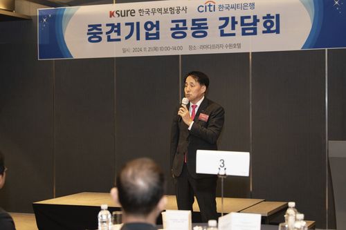 ▲ 한국무역보험공사는 21일 경기도 수원시 라마다 프라자 호텔에서 한국씨티은행과 공동으로 '중견기업 수출·해외 투자 확대 지원 간담회'를 개최했다고 밝혔다. 이번 간담회는 미국 대선 이후 세계 경제 불확실성이 커지는 가운데 한국 중견기업의 해외 투자와 수주 확대 관련된 애로사항을 파악하고 해법을 모색하기 위해 마련됐다. 간담회는 내년 거시경제 전망 분석, 무역보험공사의 중견기업 해외 진출 지원 제도 소개, 기업별 맞춤형 금융 상담 순으로 진행됐다. 장영진 무역보험공사 사장은 "러시아·우크라이나 전쟁 등 지정학적 리스크가 여전한 가운데 트럼프 행정부 재출범으로 통상 환경 불확실성이 심화해 중견기업의 고민이 클 것"이라며 "맞춤형 금융 지원이 가능하게 제도를 개선하고, 국내외 시설 투자와 관련해서는 한국씨티은행과의 협업을 통해 신속 금융지원을 추진할 계획"이라고 말했다. (세종=연합뉴스)