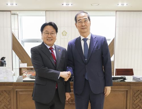 (광주=연합뉴스) 장덕종 기자 = 강기정 광주시장은 21일 정부 세종청사에서 한덕수 국무총리를 만나 민간·군 공항 통합 이전을 위해 범정부협의체 재가동을 요청했다.