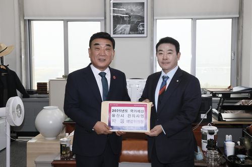 김두겸 울산시장(왼쪽), 박정 예산결산특별위원장에게 국비 증액 요청 |