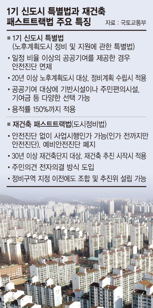 도정법 법안이 개별 단지의 재건축 절차를 간소화하면서 대규모 도시계획으로 추진되는 노후계획도시 특별법의 필요성이 적어진 셈이다.