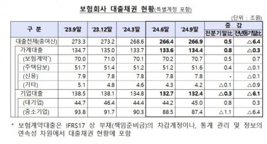 보허맛 대출채권 증가는 가계대출 영향이 컸다. 보험사 대출채권 중 기업대출 잔액은 132조4000억원으로 전분기 대비 3000억원 줄어든 반면, 가계대출은 전분기 대비 8000억원 증가한 134조4000억원을 기록했다.