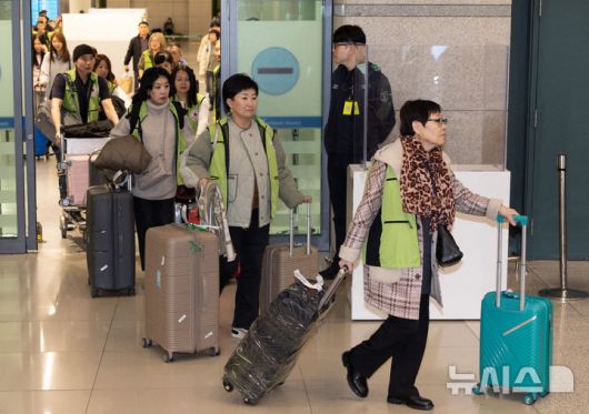 [인천공항=뉴시스] 황준선 기자 = 사할린 동포 2·3세 후손들이 22일 오후 인천국제공항을 통해 입국하고 있다.