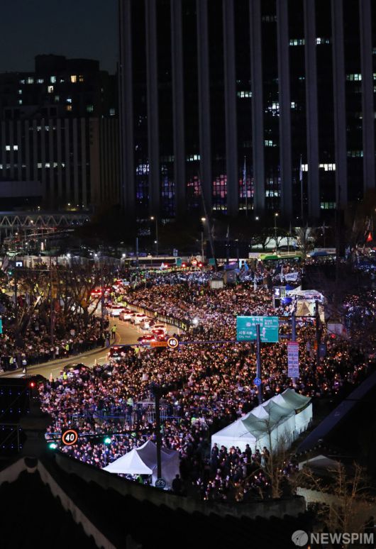 [서울=뉴스핌] 정일구 기자 = 23일 오후 서울 종로구 광화문광장 인근에서 시민사회 연대 주최로 '윤석열을 거부한다 2차 시민행진'이 열리고 있다. 2024.11.23 mironj19@newspim.com