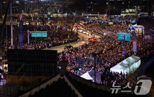 (서울=뉴스1) 김도우 기자 = 23일 서울 광화문광장 앞 도로에서 '김건희·윤석열 국정농단 규탄·특검 촉구 제4차 국민행동의 날'집회가 펼쳐지고 있다. 2024.11.23/뉴스1
