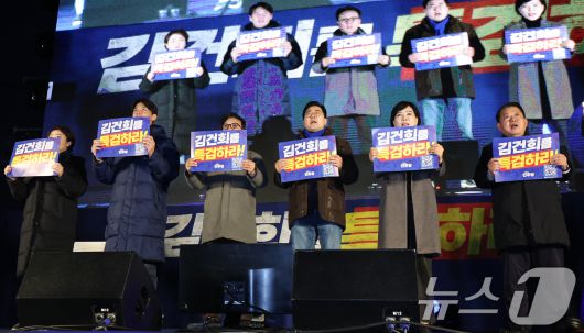 (서울=뉴스1) 김도우 기자 = 박찬대 더불어민주당 원내대표를 비롯한 당내지도부가 23일 서울 광화문광장 앞 도로에서 열린 '김건희·윤석열 국정농단 규탄·특검 촉구 제4차 국민행동의 날'집회에서 참석해 구호를 외치고 있다. 2024.11.24/뉴스1pizza@news1.krCopyright ⓒ 뉴스1. All rights reserved. 무단 전재 및 재배포, AI학습 이용 금지.
