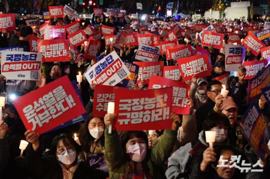 23일 오후 서울 종로구 광화문 북측광장 인근에서 열린 '김건희·윤석열 국정농단 규탄·특검 촉구 제4차 국민행동의 날' 집회에 참석한 시민들이 구호를 외치고 있다.저작권자 © CBS 노컷뉴스 무단전재 및 재배포 금지