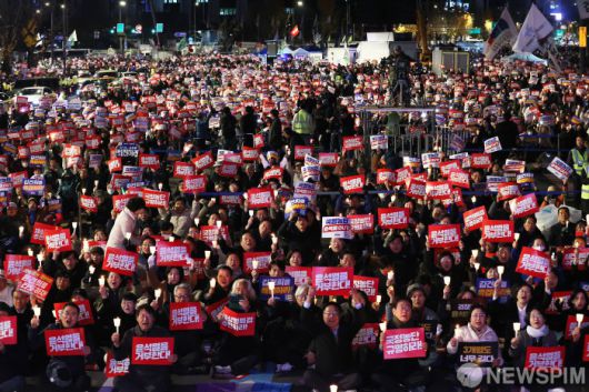 [서울=뉴스핌] 정일구 기자 = 23일 오후 서울 종로구 광화문광장 인근에서 시민사회 연대 주최로 열린 '윤석열을 거부한다 2차 시민행진'에서 참가자들이 구호를 외치고 있다. 2024.11.23 mironj19@newspim.com