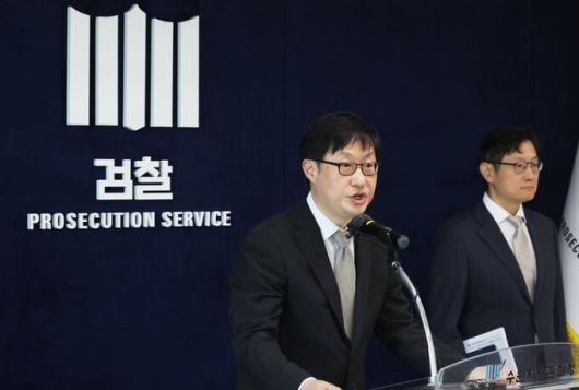 지난해 5월10일 경기도 수원시 영통구 수원지방검찰청에서 박광현 수원지검 인권보호관이 ‘노동단체 침투 지하조직’ 국가보안법 위반 사건 중간수사 결과를 발표하고 있다. 수원=연합뉴스[ |