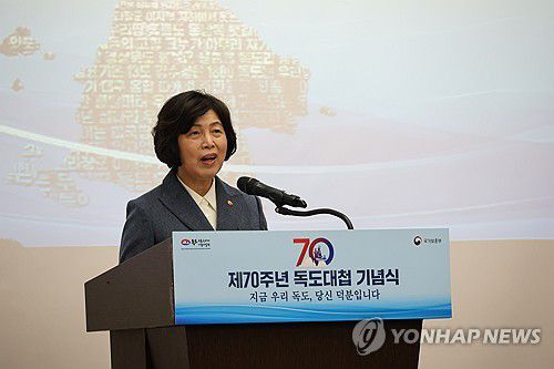 제70주년 독도대첩 기념식 축사하는 강정애 장관 |