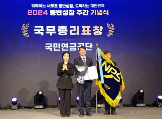 [이데일리 마켓in 김성수 기자] 국민연금공단(이하 공단)은 26일 중소벤처기업부가 주최한 ‘2024년 동반성장 주간 기념식’에서 동반성장 유공 ‘국무총리 표창’을 수상했다고 밝혔다.