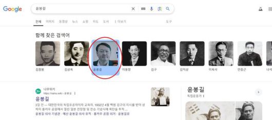 실제로 구글에 의열단 활동을 검색해 첫 페이지 가장 아래로 내려가면 관련 검색어로 독립 운동가들의 사진과 이름이 나오는 것을 확인할 수 있다.