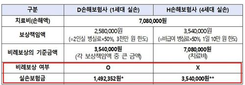 A씨는 D손해보험사에서 1세대 실손보험을, H손해보험사에서 4세대 실손보험을 각각 가입했다.