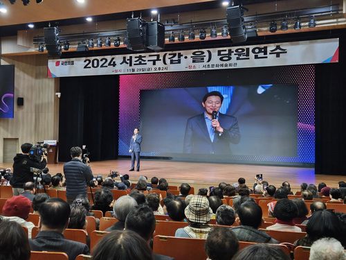 국민의힘 서초구(갑·을) 당원협의회 당원 연수 특강에 참석한 오세훈 서울시장 |