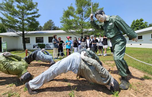 지난 5월 9일 광주 서구 치평동 518자유공원. 518광주민주화운동 44주년을 맞아 견학 온 학생들이 당시 시민군이 군 영창으로 끌려와 고문을 당했던 영창체험을 하고 있다. /김영근 기자 |