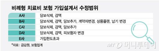 비례형 치료비 보험 가입설계서 수정범위/그래픽=최헌정 |