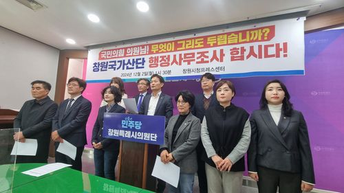 (창원=연합뉴스) 김선경 기자 = 더불어민주당 경남 창원시의원단이 지난달 말 무산된 정치브로커 명태균 씨의 창원 제2국가산단 후보지 선정 개입 의혹과 관련한 행정사무조사를 다시 추진하기로 했다.