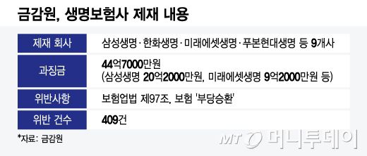 금감원, 생명보험사 제재 내용/그래픽=윤선정 |