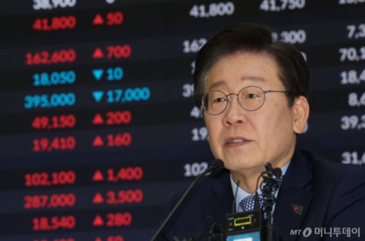 [서울=뉴시스] 고승민 기자 = 이재명 더불어민주당 대표가 28일 서울 여의도 KRX 한국거래소에서 열린 대한민국 주식시장 활성화 TF 현장간담회에서 발언하고 있다. 2024.11.28. kkssmm99@newsis.com /사진=고승민 |