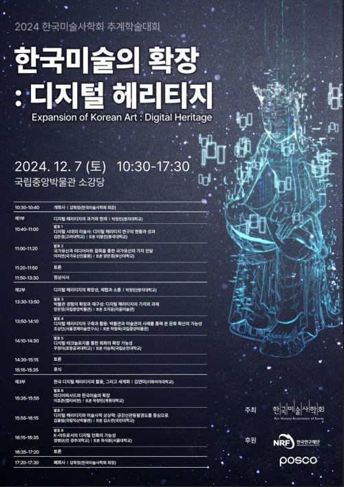 한국미술사학회는 오는 7일 서울 용산구 국립중앙박물관 소강당에서 ‘한국미술의 확장: 디지털 헤리티지’ 라는 제목의 2024년 추계학술대회를 개최한다고 2일 밝혔다.