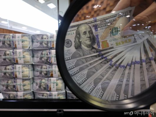 (15일 서울 중구 하나은행 위변조대응센터에서 은행 관계자가 달러화를 정리하고 있다. /사진=뉴스1 |