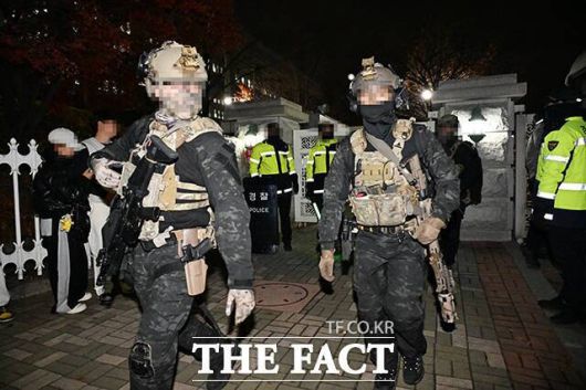 윤석열 대통령이 비상계엄을 선포하면서 3일(현지시간) 미국 뉴욕증시에 상장된 한국 주요 기업의 주가가 폭락세를 보였다. 서울 여의도 국회에 4일 새벽 계엄군들이 이동하는 모습. /배정한 기자 |