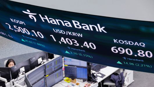3일 오후 서울 중구 하나은행 본점 딜링룸. /연합뉴스 |