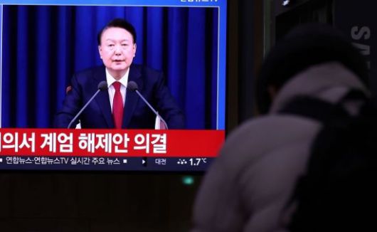 윤석열 대통령이 4일 새벽 4시30분 긴급 담화를 통해 어젯밤 선포된 비상계엄을 국회의 요구를 수용해 해제한다고 밝혔다. 사진은 윤대통령 긴급 담화가 서울역 대합실 TV에 나오고 있다. 조용준 기자 |
