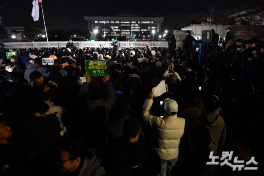 촛불행동은 4일 오전 서울 영등포구 국회 정문 앞에서 기자회견을 열고 "윤석열은 헬기를 띄우고 계엄군을 진입시켜 민의의 전당인 국회를 짓밟고 국회의장을 비롯해 여야 정당 대표들을 체포하려 했다"며 "하지만 윤석열의 비상계엄 시도는 분노한 국민들에 의해 처참하게 진압됐다"고 밝혔다.