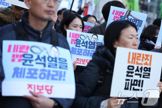 (서울=뉴스1) 신웅수 기자 = 민주노총을 비롯한 시민사회단체 회원들이 4일 오전 서울 광화문광장에서 윤석열 대통령의 불법 계엄을 규탄하고 있다. 민주노총은 윤석열 정권이 퇴진할때까지 무기한 총파업에 돌입한다고 밝혔다. 윤석열 대통령은 지난 3일 밤 44년 만의 계엄을 선포했지만 국회의 비상계엄 해제 요구 결의안이 가결되면서 6시간 만에 비상계엄은 해제됐다. 2024.12.4/뉴스1