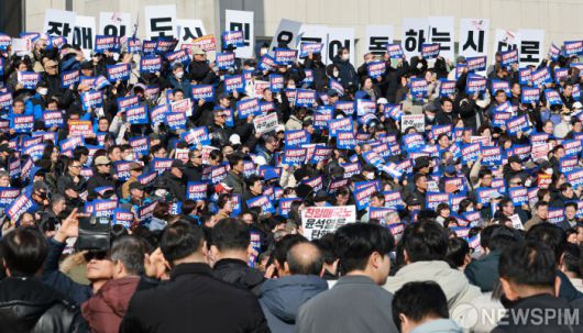 [서울=뉴스핌] 이형석 기자 = 4일 오후 서울 여의도 국회에서 윤석열 대통령 사퇴촉구 탄핵추진 비상시국대회가 열리고 있다. 2024.12.04 leehs@newspim.com