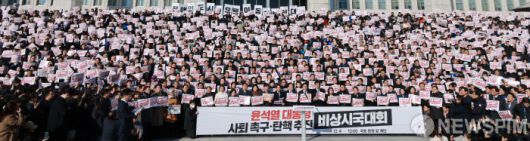 [서울=뉴스핌] 이형석 기자 = 4일 오후 서울 여의도 국회에서 윤석열 대통령 사퇴촉구 탄핵추진 비상시국대회가 열리고 있다. 2024.12.04 leehs@newspim.com