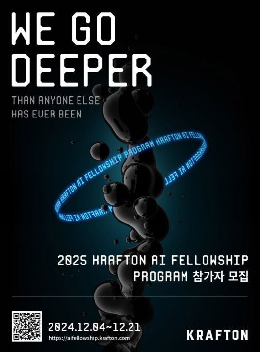 [이데일리 김현아 기자] ㈜크래프톤(대표 김창한)이 인공지능(AI) 분야 인재 양성 프로그램인 ‘크래프톤 AI 펠로우십(KRAFTON AI Fellowship Program)’ 3기 지원자를 모집한다고 4일 밝혔다.