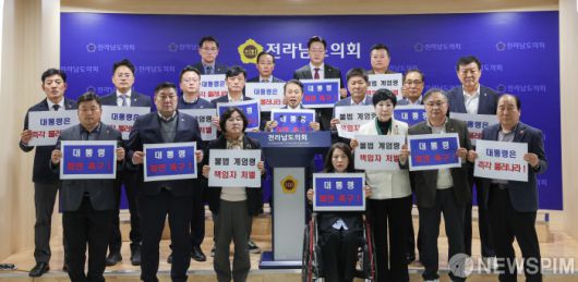 [광주무안=뉴스핌] 조은정 기자 = 광주시전남도의회가 4일 의회 브리핑룸에서 윤석열 대통령 긴급 담화·계엄 관련 기자회견을 하고 있다. 2024.12.03 ej7648@newspim.com |