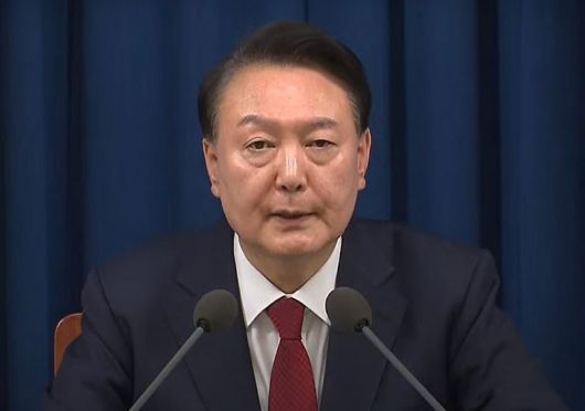 윤석열 대통령이 4일 새벽 용산 대통령실에서 비상계엄 선포 해제를 발표하고 있다. [연합] |