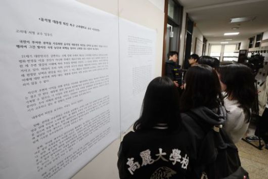 고려대에 붙은 교수진 시국선언 대자보. 연합뉴스 |