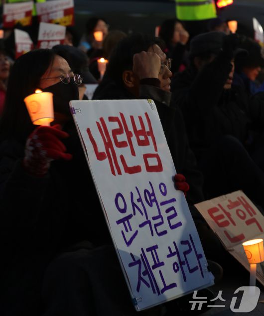 (전주=뉴스1) 유경석 기자 = 4일 전북자치도 전주시 전주객사 앞에서 열린 '윤석열 퇴진 비상 촛불집회'에서 참가자들이 윤석열 대통령 퇴진을 촉구하고 있다. 2024.12.4/뉴스1Yks919@news1.krCopyright ⓒ 뉴스1. All rights reserved. 무단 전재 및 재배포, AI학습 이용 금지.