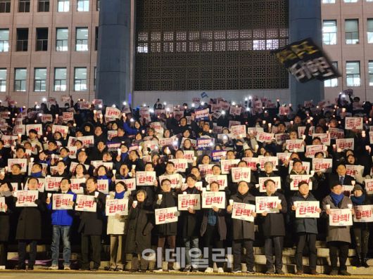 4일 오후 5시께 서울 여의도의 국회 본청 앞 ‘범국민 촛불문화제’. 촛불과 태극기를 든 사람들이 국회 계단에 모여 앉아 윤석열 대통령의 사퇴를 외쳤다. 전날 벌어진 윤 대통령의 기습 비상 계엄 선포에 대한 책임을 묻고 퇴진을 촉구하기 위해서다. 영상 4도를 기록할 정도로 추운 날씨 속에서 3000명(민주당 측 추산)의 사람들은 ‘윤석열 탄핵’, ‘내란 행위 즉각 수사’란 문구가 적힌 피켓을 흔들었다.