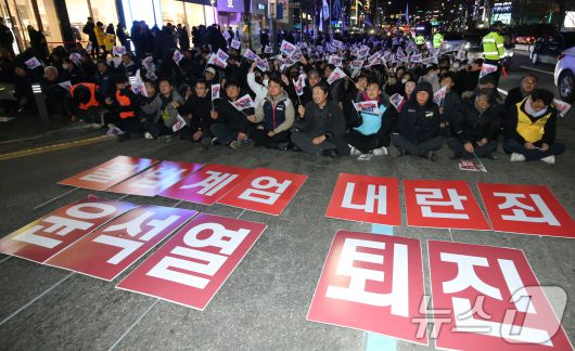 (대전=뉴스1) 김기태 기자 = 윤석열퇴진대전운동본부와 시민단체를 비롯해 시민들이 4일 대전 서구 은하수네거리에서 윤석열 대통령 퇴진을 촉구하는 집회를 열고 있다. 2024.12.4/뉴스1presskt@news1.krCopyright ⓒ 뉴스1. All rights reserved. 무단 전재 및 재배포, AI학습 이용 금지.