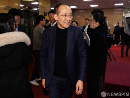 [서울=뉴스핌] 윤창빈 기자 = 추경호 국민의힘 원내대표가 4일 오후 서울 여의도 국회에서 열린 비상의원총회에 참석하고 있다. 2024.12.04 pangbin@newspim.com
