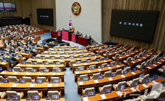 5일 오전 서울 여의도 국회에서 열린 제418회국회(정기회) 제16차 본회의에서 국민의힘 불참 속에 정명호 의사국장이 윤석열 대통령과 김용현 국방부 장관에 대한 탄핵소추안을 보고하고 있다. 뉴스1 |