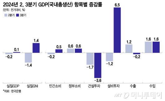 2024년 2, 3분기 GDP(국내총생산) 항목별 증감률/그래픽=이지혜 |