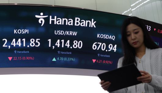 5일 오후 서울 중구 하나은행 딜링룸 전광판에 지수가 표시되고 있다. (사진=뉴시스) |