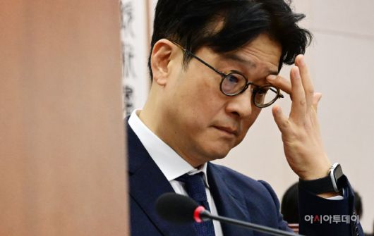 이창수 서울중앙지검장이 지난 10월 18일 국회에서 열린 법제사법위원회의 서울중앙지방검찰청, 서울고등검찰청 등에 대한 국정감사에 출석해 생각에 잠겨 있다. /이병화 기자 |